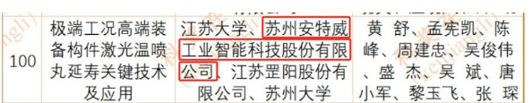 近日,蘇州安特威工業(yè)智能科技股份有限公司與江蘇大學(xué)、蘇州大學(xué)等聯(lián)合研發(fā)的極端工況高端裝備構(gòu)件激光溫噴丸延壽關(guān)鍵技術(shù)及應(yīng)用在2023中國商業(yè)聯(lián)合會科技獎評選中脫穎而出,榮獲二等獎!