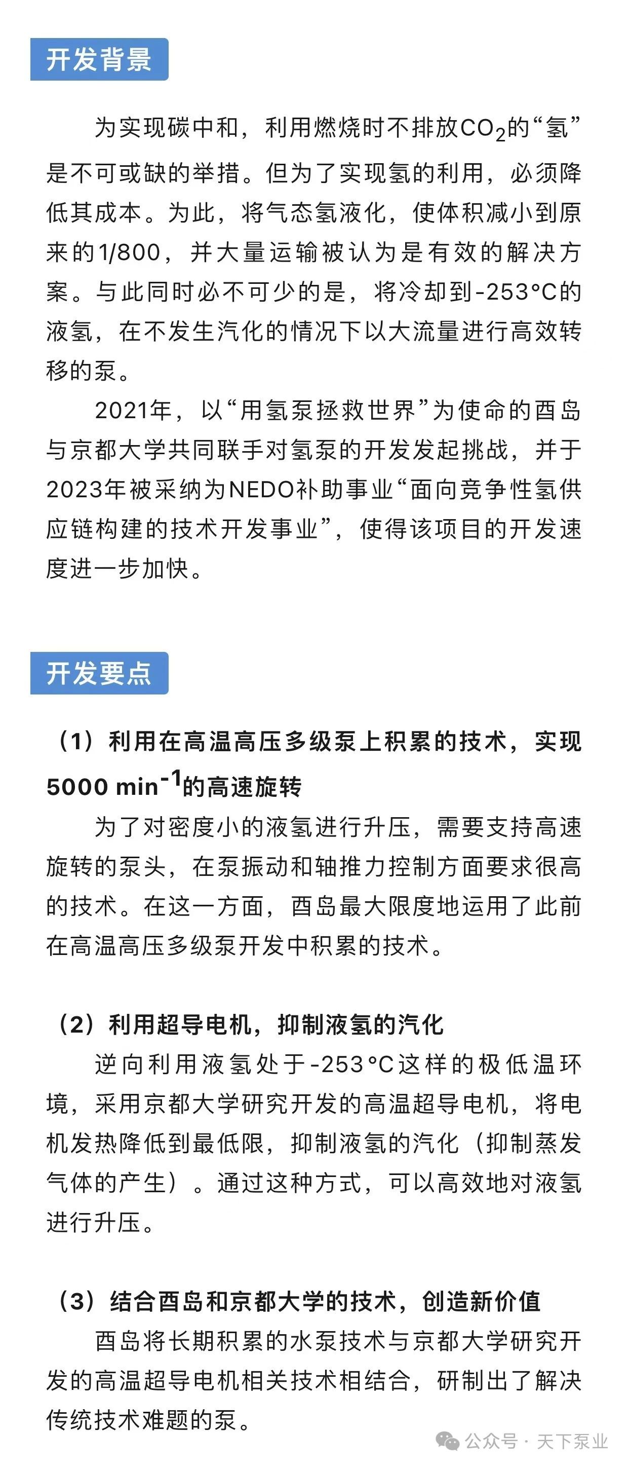 株式會(huì)社酉島制作所(以下簡(jiǎn)稱“酉島”)和京都大學(xué)工學(xué)研究科(以下簡(jiǎn)稱“京都大學(xué)”)共同開(kāi)發(fā)出世界上首個(gè)搭載高溫超導(dǎo)電機(jī)的大流量高效率液氫泵。此次,該液氫泵的運(yùn)行試驗(yàn)取得成功。液氫的高效大量運(yùn)輸有助于大幅降低氫成本,向著實(shí)現(xiàn)氫能社會(huì)邁出一大步。