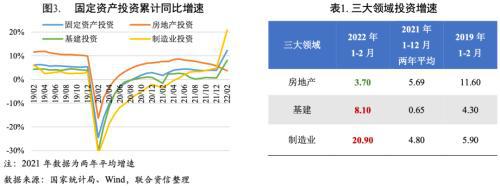 2022年1-2月,隨著穩(wěn)增長政策發(fā)力,支持實(shí)體經(jīng)濟(jì)的力度加大,多項(xiàng)經(jīng)濟(jì)數(shù)據(jù)出現(xiàn)回暖跡象,但基建、制造業(yè)投資和消費(fèi)同比數(shù)據(jù)表現(xiàn)較好,也源于上年同期低基數(shù)的支撐作用,一定程度上高估了實(shí)際增長情況。