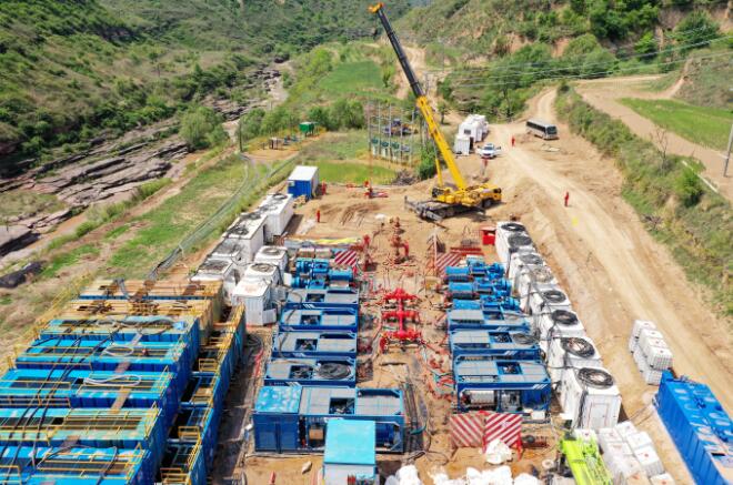 5月10日, 華東油氣分公司延川南煤層氣田首次成功應(yīng)用電動壓裂泵在T84平臺對三口煤層氣井進(jìn)行儲層改造。與傳統(tǒng)壓裂車組對比能耗低、噪聲小,噪聲降幅達(dá)20%以上,節(jié)能降碳、提速提效效果顯著。延川南煤層氣田譚坪區(qū)塊2023年共部署四個新平臺12口井,為保證四個平臺實現(xiàn)電動化鉆井及壓裂,氣田新建4公里同桿雙回路10千伏線路,能夠滿足2萬千伏安最大供電容量。