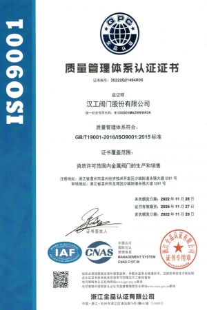 公司先后通過了ISO9001:2008國際質(zhì)量管理體系認證,ISO4001:2004環(huán)境管理體系認證,GB/T28001-2001職業(yè)健康安全管理體系認證,中華人民共和國特種設(shè)備制造許可認證(TS),中國石油和石油化工設(shè)備工業(yè)協(xié)會團體會員單位,中國化工集團公司合格供應(yīng)商成員單位,中國華電集團公司集團級供應(yīng)商成員單位,中國華能集團公司供應(yīng)商,中國城市燃氣協(xié)會團體會員,中國建筑金屬結(jié)構(gòu)協(xié)會會員單位,中國著名品牌等這一系列的質(zhì)保體系是漢工閥門在設(shè)計、開發(fā)、制造、銷售、服務(wù)于一體的后盾力量,確保了漢工閥門的質(zhì)量與品牌。