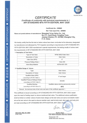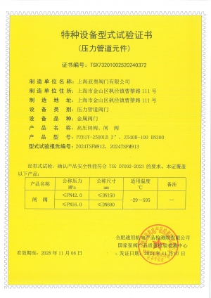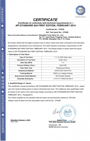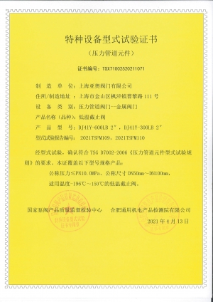 先后通過(guò)了DNV-ISO 9001質(zhì)量管理體系、美國(guó)石油學(xué)會(huì)API Spec Q1體系認(rèn)證、API 602、API 6D、API600產(chǎn)品認(rèn)證、API 607防火認(rèn)證、API 624、ISO 15848、TA-LUFT低泄漏認(rèn)證、TUV -CE/PED認(rèn)證、SIL功能安全認(rèn)證、TS特種設(shè)備制造許可證(A1級(jí))、海關(guān)聯(lián)盟CUTR認(rèn)證、ISO 14001環(huán)境管理體系認(rèn)證、ISO 45001職業(yè)健康安全體系認(rèn)證、ISO 10012測(cè)量管理體系認(rèn)證、GB/T 31950企業(yè)誠(chéng)信管理體系認(rèn)證、SA8000社會(huì)責(zé)任管理體系認(rèn)證、GB/T29490知識(shí)產(chǎn)權(quán)管理認(rèn)證、ISO50001能源管理體系認(rèn)證、GB/T33635綠色供應(yīng)鏈認(rèn)證、安全生產(chǎn)標(biāo)準(zhǔn)化、AAA信用、五星售后服務(wù)達(dá)標(biāo)企業(yè),獲12項(xiàng)發(fā)明專利、40余項(xiàng)實(shí)用新型專利及多項(xiàng)軟件著作權(quán),中國(guó)通用機(jī)械工業(yè)協(xié)會(huì)會(huì)員單位,GB/T-13927《工業(yè)閥門(mén) 壓力實(shí)驗(yàn)》、JB/T1434《波紋管密封鋼制閘閥》、JB/T1463《高壓加氫裝置用閥門(mén) 技術(shù)規(guī)范》《低溫液氫用管線閥門(mén)技術(shù)規(guī)范》《高壓氫氣用管線閥門(mén)技術(shù)規(guī)范》參編單位。